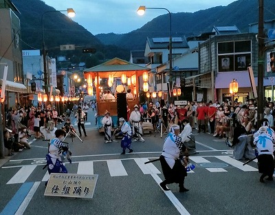 備中たかはし松山踊り(備中たかはし松山踊り保存会主催)が8月14日(日)、15日(月)、16日(火)に3日間JR備中高梁駅前大通りで開催されました。新型コロナの影響で開催時間を午後7時から午後9時30時までに短縮(団体・企業連は中止)しての開催となりましたが、踊り手たちが「松山踊り」と「やとさ踊り」を楽しみながら踊りました。2日目の15日(月)は街中に設けられた指定場所並びに午後7時から踊り会場で「仕組み踊り」が行われました。仕組踊りは江戸時代中期(1744年)に伊勢亀山から移封された、城主板倉勝澄公が始めた武士の踊り。