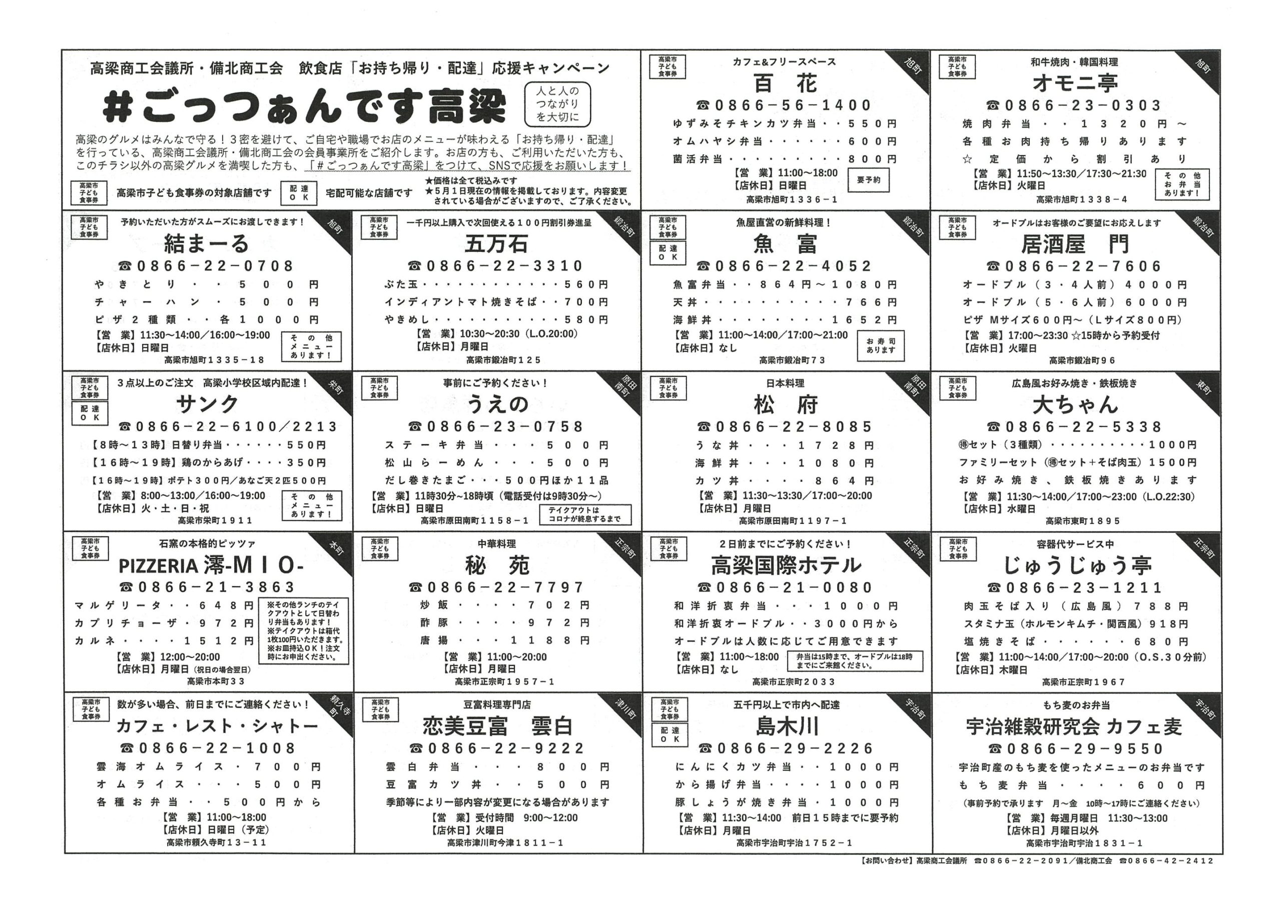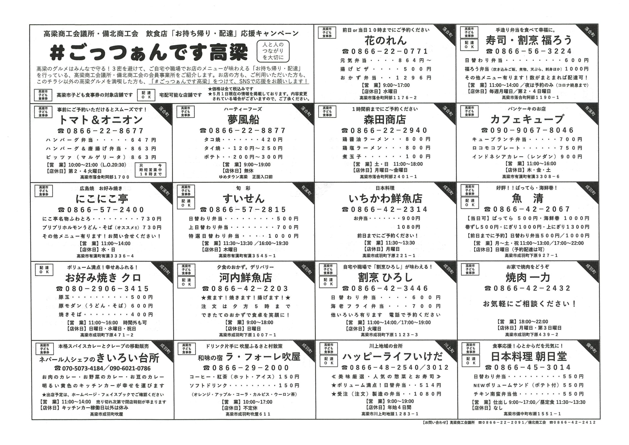 飲食店「お持ち帰り・配達」応援チラシ『ごっつぁんです高梁(2面)