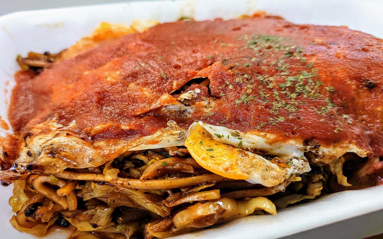 ・ぶた玉 560円 ・インディアントマト焼きそば 700円 ・やきめし580円 (各税込、テイクアウトの価格です) |