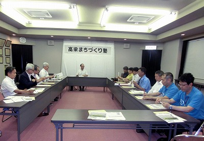高梁地域づくり交流会(西右介会長)では、7月8日(月)午後6時30分から高梁商工会館・第1会議室で、「まちづくり塾」(高梁商工会議所共催)を開催いたしました。当日は17人が出席、西会長の挨拶の後、講師にお招きした岡山県備中県民局高梁地域事務所高田豊和所長より、「高梁に期待、また来たい町づくり」をテーマに講演をいただきました。終了後、会場を移動して懇親会を開催、高田所長を囲んで和やかに懇談が行われました。