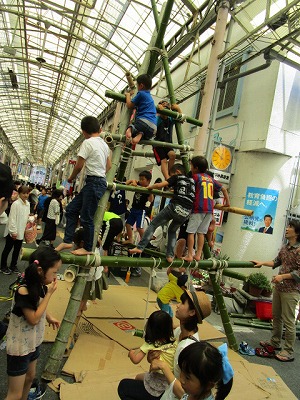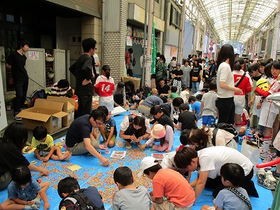 今回で18回目を迎える「わくわく子供フェスタ21」(同実行委員会主催)が、6月16日(土)午前10時から高梁栄町商店街で開催されました。当日は午前9時~午後3時まで歩行者天国になり、「つくる」「あそぶ」「たべる」「みるきく」のコーナーや特設ステージで歌やダンスの発表が行われ、多くの人で賑わいました。