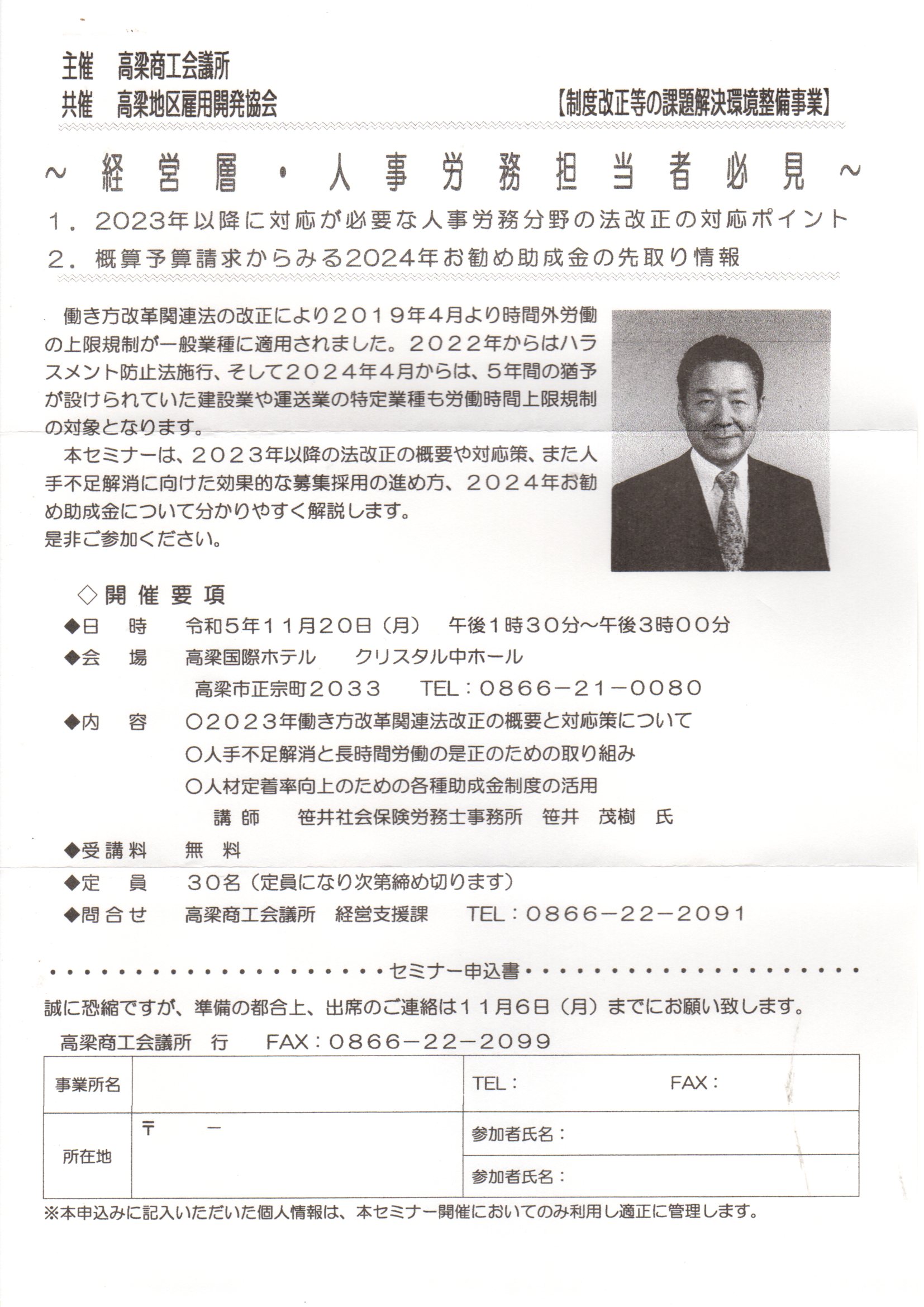 特別経営相談会「無料相談11月」のご案内(高梁商工会議所)