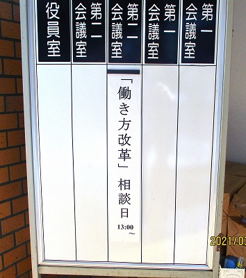 高梁商工会議所では岡山働き方改革推進支援センターと連携し、令和2年度4月から3月までの毎月第3木曜日、午後1時から4時まで「働き方改革相談日」を設け、高梁商工会館で個別相談会(予約制)を開催いたしました。社会保険労務士の西川浩二氏を講師にお招きし、働き方改革関連法を中心に相談に対応してきました。令和3年4月以降も実施する計画ですので、ご希望の方は、当商工会議所所経営支援課までお問合せ下さいますようご案内いたします。