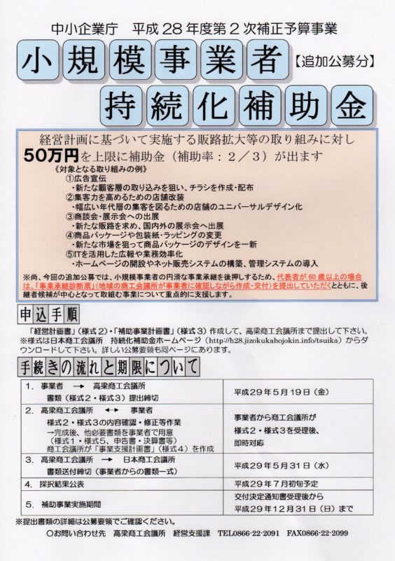 > 「小規模事業者持続加補助金」(追加公募)のご案内