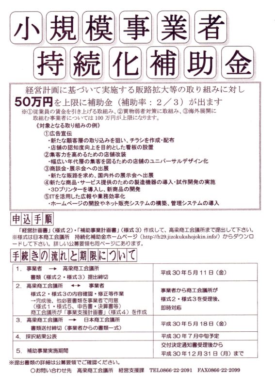 > 「小規模事業者持続化補助金」公募のご案内