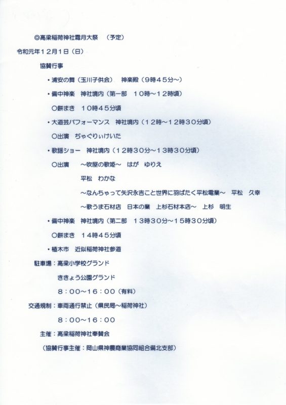 > 「高梁稲荷神社霜月大祭」開催のご案内
