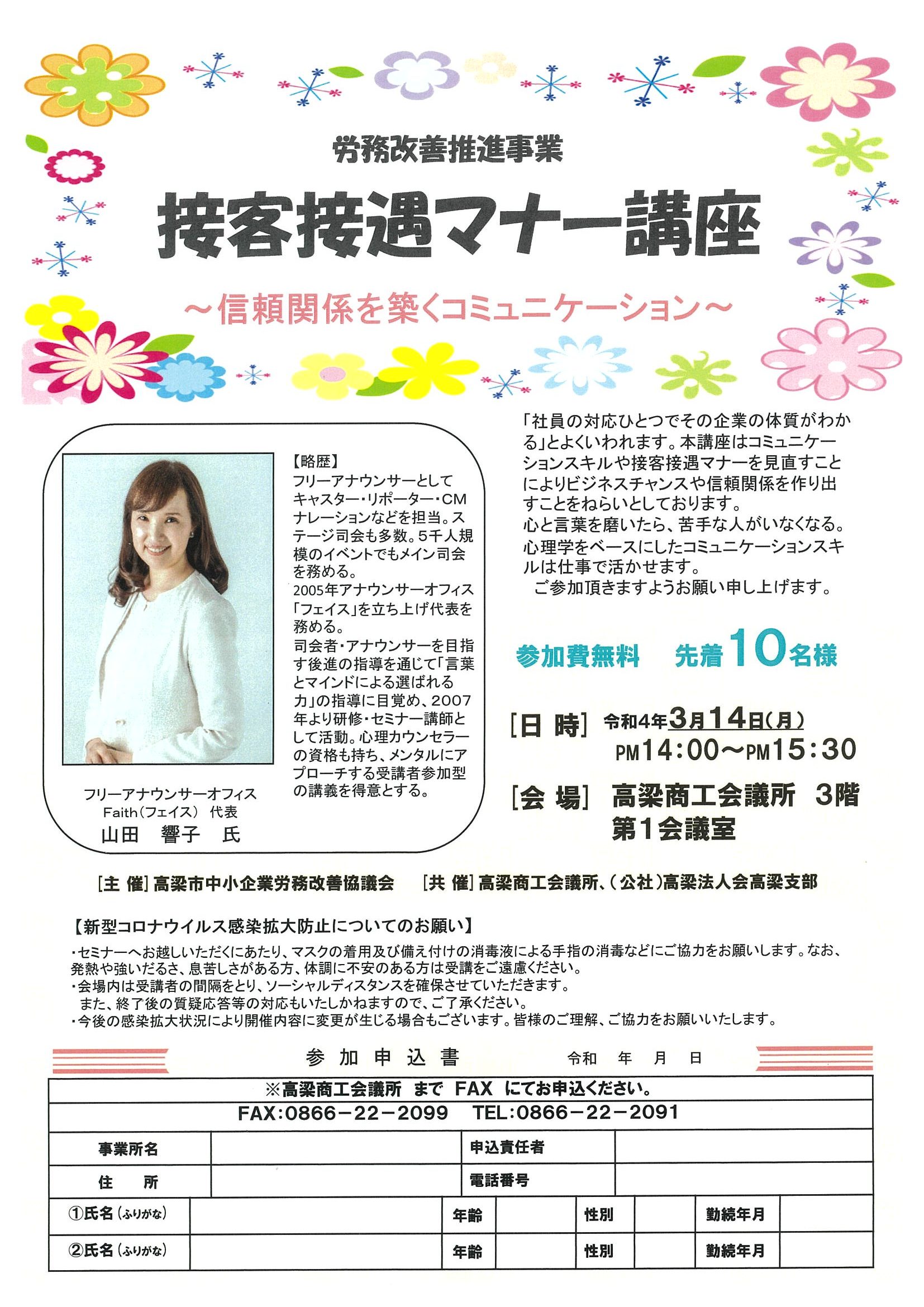「接客接遇マナー講座」開催のご案内