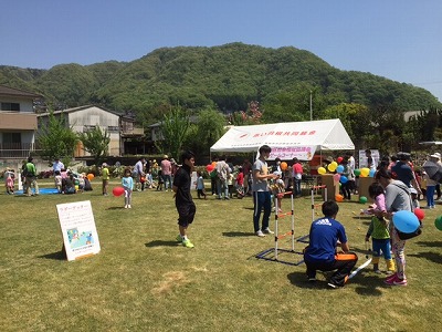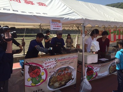 高梁商工会議所落合町支部(三宅善行支部長)主催の「落合ふれあい公園まつり」が、4月26日(日)に高梁市落合町阿部の「落合ふれあい公園」で開催されました。当日は「まつもとななみライブ」、子供神楽、キックターゲット、ソフトグライダー飛ばし大会、ミンティァダンスショー、竹とんぼ・竹馬作戦、ビンゴゲームなど盛りだくさんの催しが行われ、またフードコーナーは、うどん、お弁当の他、備中高梁食援隊によるインディアントマト焼そばも出店、公園まつりは多くの人出で賑わいました。