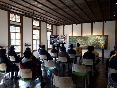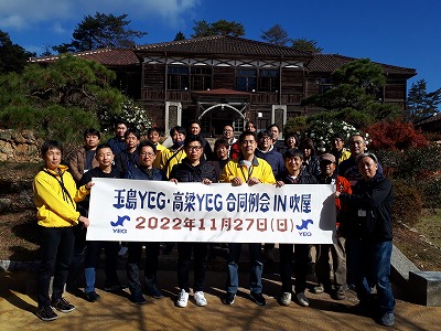 高梁商工会議所青年部(片岡伸介会長)では玉島商工会議所青年部との合同例会を、11月27日(日)午前10時から開催いたしました。当日は両青年部より26人が参加、高梁市の吹屋ふるさと村に集合した後、観光ボランティアに案内いただき、吹屋の街並み、旧吹屋小学校などを見学いたしました。その後、吹屋ふれあいの森で懇親会を行い交流を深めました。