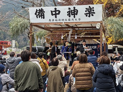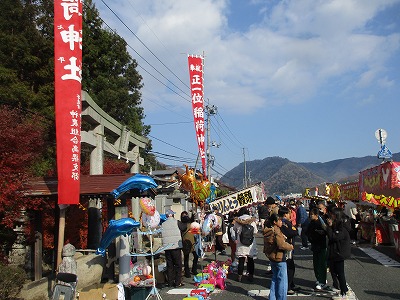 高梁の冬の風物詩である「高梁稲荷神社霜月大祭」(高梁稲荷神社主催)が12月3日(日)、高梁市落合町近似の稲荷神社一帯で開催されました。備中県民局高梁地域事務所前から稲荷神社前まで歩行者天国になり、稲荷神社境内の特設舞台では備中神楽などの協賛行事も行われ多くの参拝客で賑わいました。(協賛行事は岡山県神農商業協同組合備北支部の主催で開催されました。)