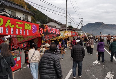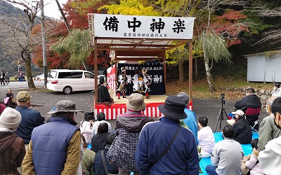 高梁の冬の風物詩である「高梁稲荷人社霜月大祭」(高梁稲荷神社主催)が12月1日(日)、高梁市落合町近似の稲荷神社一帯で開催されました。備中県民局高梁地域事務所前から稲荷神社前まで歩行者天国になり、稲荷神社境内の特設舞台では備中神楽などの協賛行事も行われ多くの参拝客で賑わいました。(備中神楽など協賛行事は岡山県神農商業協同組合備北支部の主催で開催されました。)