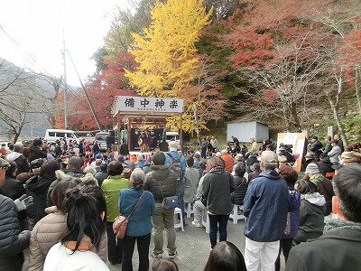 高梁の冬の風物詩である「高梁稲荷神社霜月大祭」(高梁稲荷神社奉賛会主催)が12月1日(日)、高梁市落合町近似の稲荷神社一帯で開催されました。備中県民局高梁地域事務所前から稲荷神社前まで歩行者天国になり、稲荷神社下の特設舞台では備中神楽や歌謡ショーなどの協賛行事も行われ多くの参拝客で賑わいました。(協賛行事は岡山県神農商業協同組合備北支部の主催で開催されました。)
