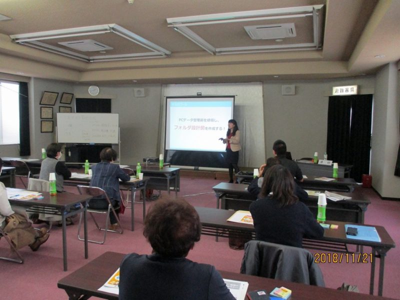 高梁商工会議所では、11月21日(水)午後1時30分から高梁商工会館において、消費税軽減税率対策窓口相談等事業としてPCデータ整理で業務効率改善セミナーを開催いたしました。当日は15人が参加、はじめに高梁商工会議所経営支援課より消費税率引き上げと軽減税率制度の概要について説明した後、講師に㈱ミセルカ代表取締役上口まみ氏をお招きし、PCデータ整理術について講演をいただき、参加者は熱心に受講されていました。