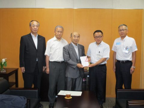 (公社)高梁法人会(小見山豊会長)では、被災された皆様への支援や復興にお役立ていただくため、8月6日(月)に、小見山会長・小林副会長・柴倉副会長が高梁市役所を訪ね、近藤市長に『高梁市災害義援金』として、50万円を寄贈いたしました。一日も早く、この高梁市が復興することを心より願うばかりです。