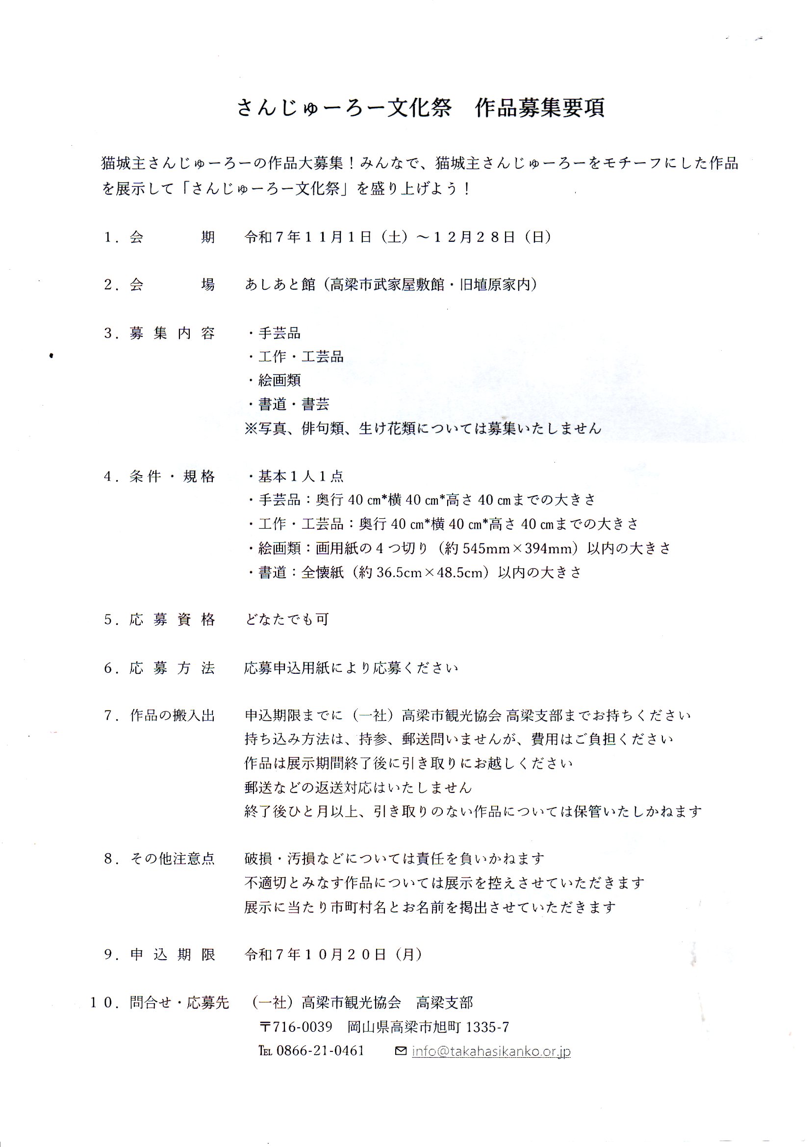 さんじゅーろー文化祭「作品大募集!!」のご案内(高梁市観光協会高梁支部)