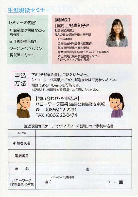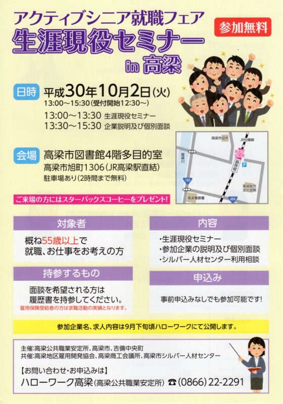 > アクティブシニア就職フェア「生涯現役セミナーIN高梁」のご案内