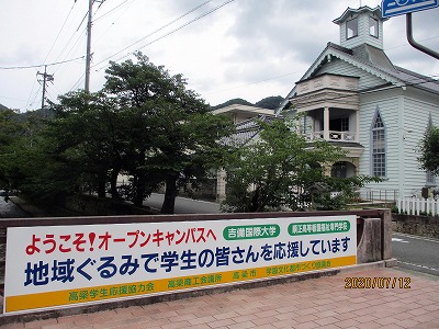 高梁学生応援協力会・高梁商工会議所・学園文化都市づくり協議会では、吉備国際大学、順正高等看護福祉専門学校のオープンキャンパス応援事業を実施しており、オープンキャンパスへ参加される皆様を温かく迎えようと7月9日(木)から「歓迎看板」を設置いたしました。歓迎看板は、JR備中高梁駅と高梁基督教会前住之江橋の2箇所に設置し、オープンキャンパスへの参加者を歓迎いたしました。歓迎看板は8月、9月に開催されるメインオープンキャンパスでも設置する計画です。