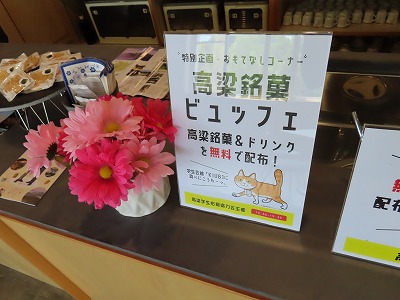 高梁学生応援協力会・高梁商工会議所・学園文化都市づくり協議会は合同で、7月13日(日)に開催された吉備国際大学オープンキャンパスにおいて「備中高梁ビュッフュ」コーナーを設け、高梁特産のお菓子を訪れた皆様へふるまい、おもてなし(オープンキャンパス応援事業)を行いました。