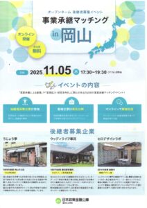 > オープンネーム後継者募集イベント「事業承継マッチングin岡山」のご案内