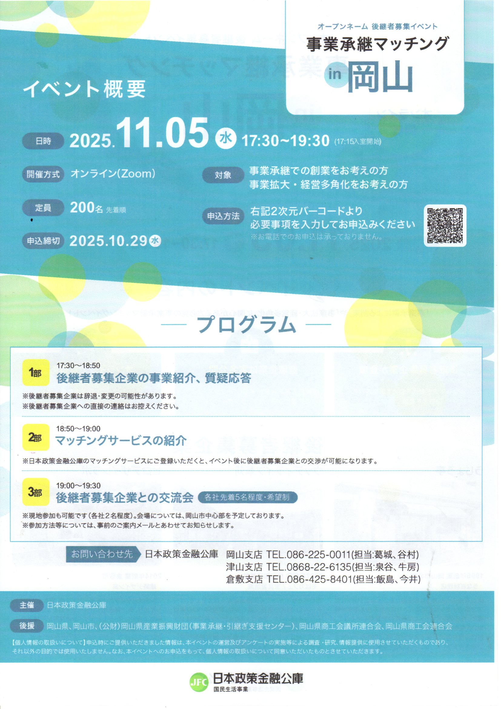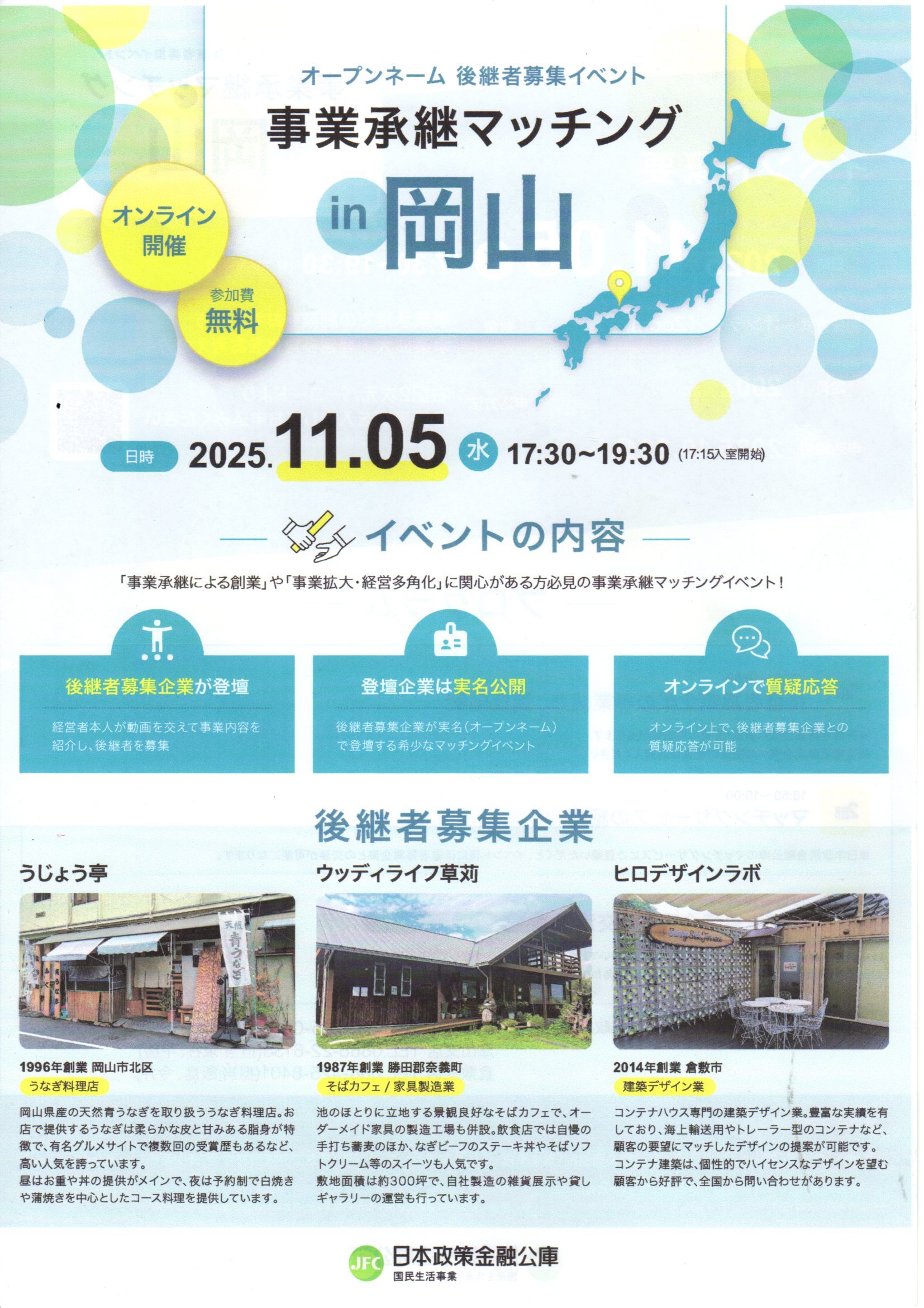 オープンネーム後継者募集イベント「事業承継マッチングin岡山」のご案内