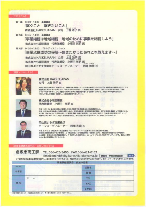 事業承継講演会(高梁川流域連携中枢都市圏事業)のご案内