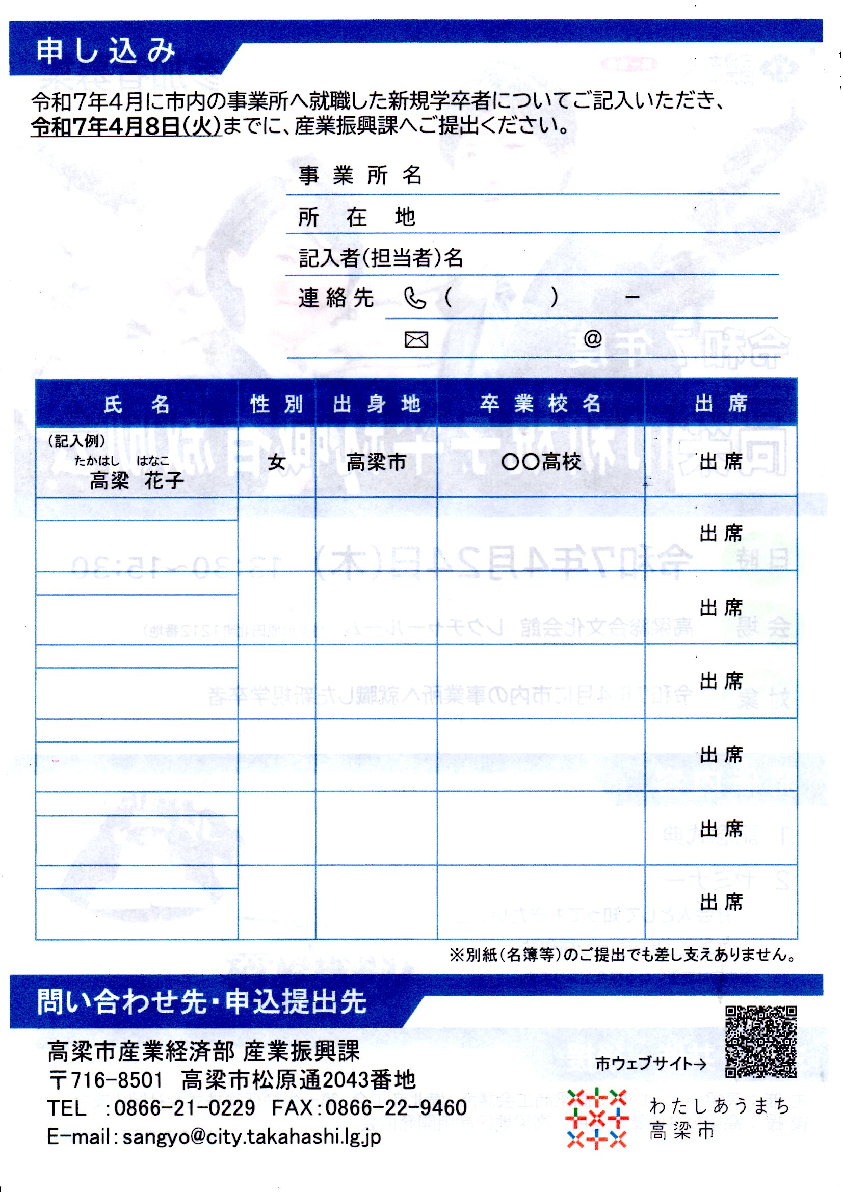 令和7年度高梁市新規学卒就職者激励会のご案内