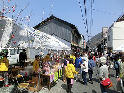 備中たかはし城下町・町家通りの雛まつりが4月6日(土)・7日(日)の2日間、高梁市本町地区一帯で開催されました。両日は本町・町家通り各戸でひな人形が展示され多くの人出で賑わいました。雛祭りには高梁商工会議所女性会(津野辺金代会長)も出展し、お弁当やかきもち、ひし餅、桜ロール、雑巾着やお土産品(日本貿易産業㈱)のなどの販売を行いました。