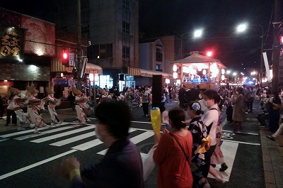 備中たかはし松山踊り(備中たかはし松山踊り保存会主催)が8月14日(日)からJR備中高梁駅前大通りで開催されました。新型コロナの影響で開催時間を午後7時から午後9時30時までに短縮(団体・企業連は中止)しての開催で、コロナ対策として会場には4か所の検温、消毒などコーナーが設けられました。8月14日初日の会場では音頭保存会のメンバーによる音頭に合わせて、踊り手たちが「松山踊り」を楽しみながら踊りました。松山踊りは地踊り、ヤトサ、仕組みの3種類で構成、岡山県重要無形民俗文化財に指定されています。踊りは16日(火)までの3日間開催されます。