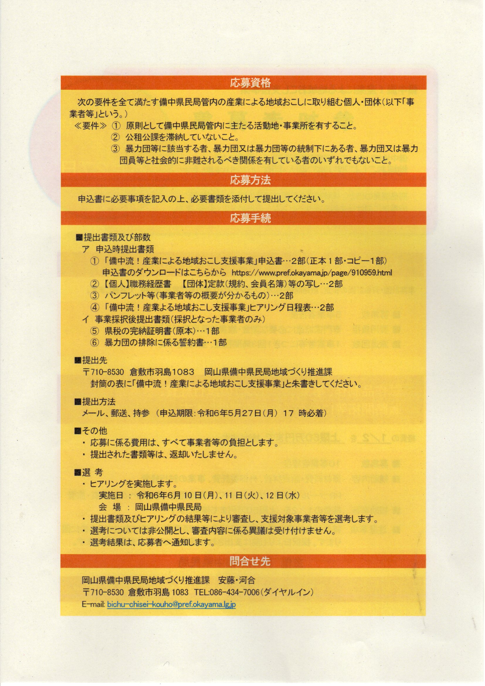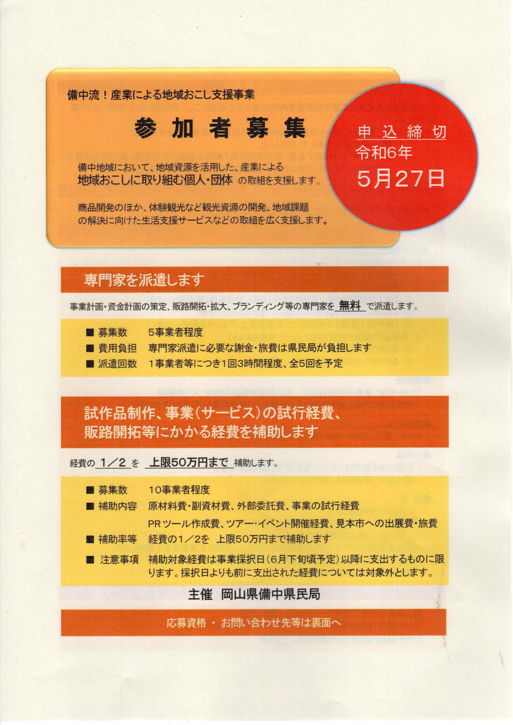 備中流!産業による地域おこし支援事業参加者募集のご案内