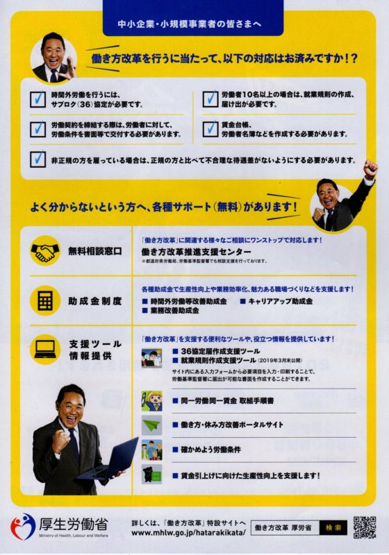 > 働き方改革に関する個別相談日(毎月第3木曜日・高梁商工会議所)のご案内