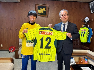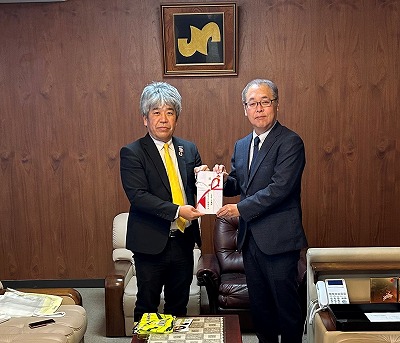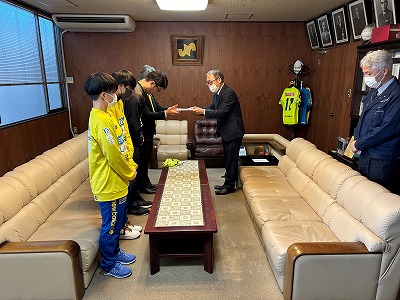 高梁学生応援協力会(田中宏和会長)と高梁商工会議所は合同で、12月22日(金)に高梁商工会館で吉備国際大学シャルム岡山高梁へ支援金を贈呈いたしました。当日は、吉備国際大学シャルム岡山高梁の赤木GM、太田監督、選手2人が出席、高梁学生応援協力会田中会長から支援金の目録が赤木GMに手渡されました。高梁学生応援協力会・高梁商工会議所では毎年支援金を贈呈しています。