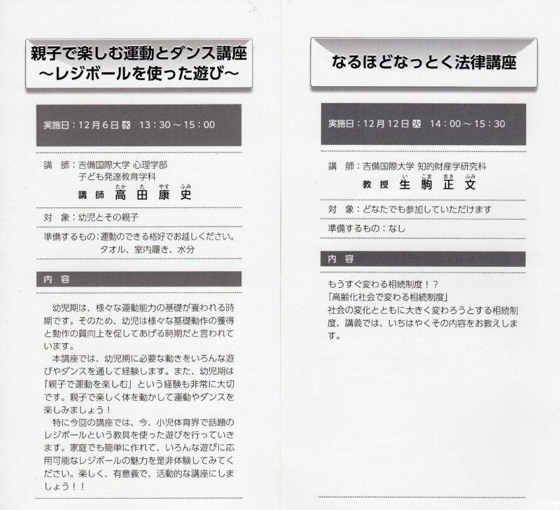 吉備国際大学無料公開講座「まちなかゼミナール」のご案内
