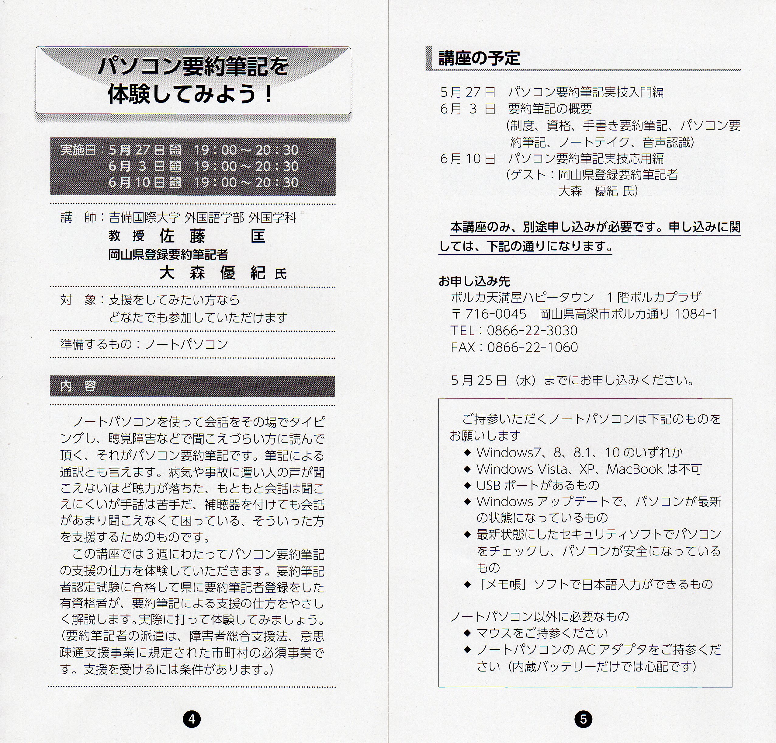 吉備国際大学無料公開講座「まちなかゼミナール」開催のご案内