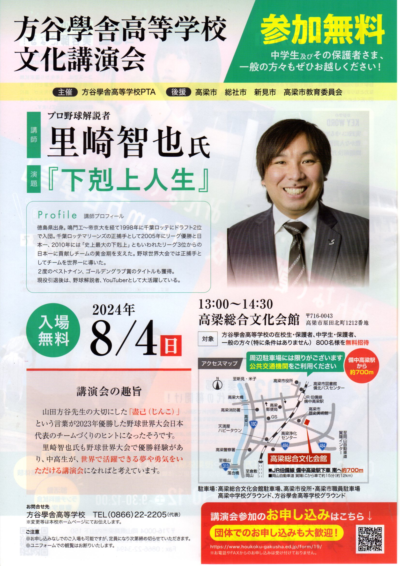 方谷学舎高等学校「文化講演会」・「夏休み子ども寺子屋」のご案内
