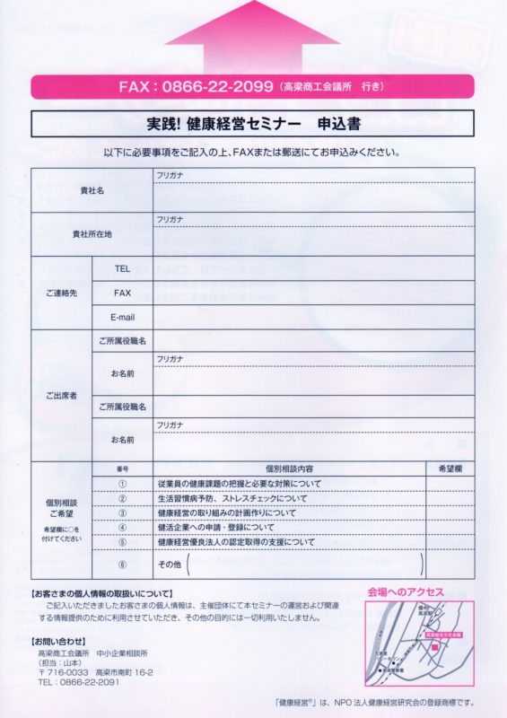 実践「健康経営セミナー・稼ぐ力を向上させるために」(高梁)開催のご案内