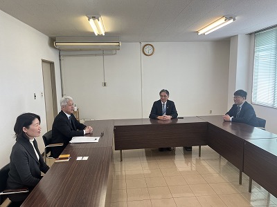 高梁商工会議所では岡山商工会議所との情報交換会を、令和6年3月22日(金)午後2時30分から高梁商工会館で開催いたしました。当日は、岡山商工会議所から鶴岡 理事・事務局長、そして高梁商工会議所から遠藤専務理事ら3人が出席、また今回は大阪商工会議所経営情報センター古川次長にも出席いただきました。当日は、岡山商工会議所鶴岡 理事・事務局長より商工会議所の事業活動・運営全般について、会館管理やDX化等について情報提供をいただいた後意見交換を行いました。