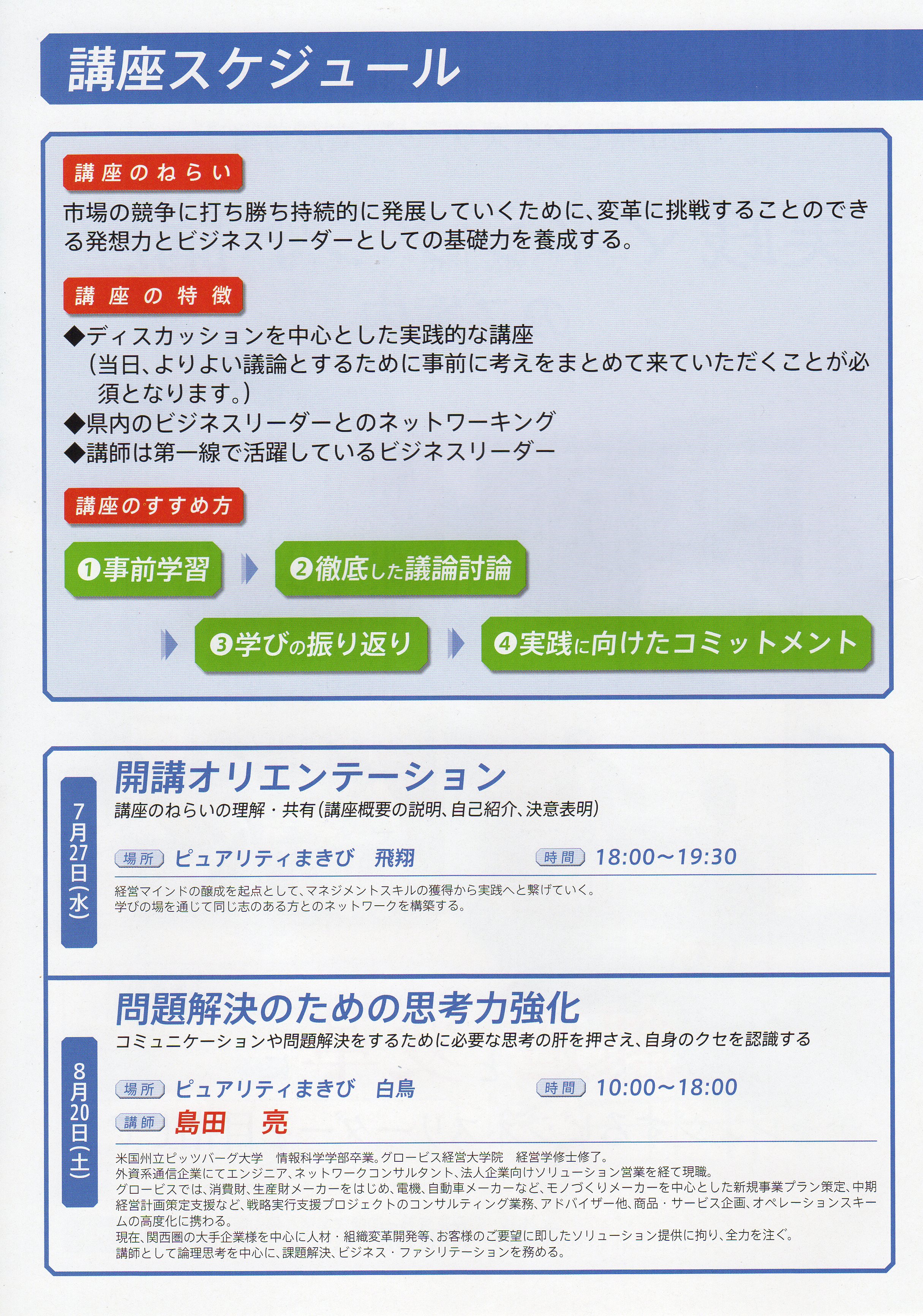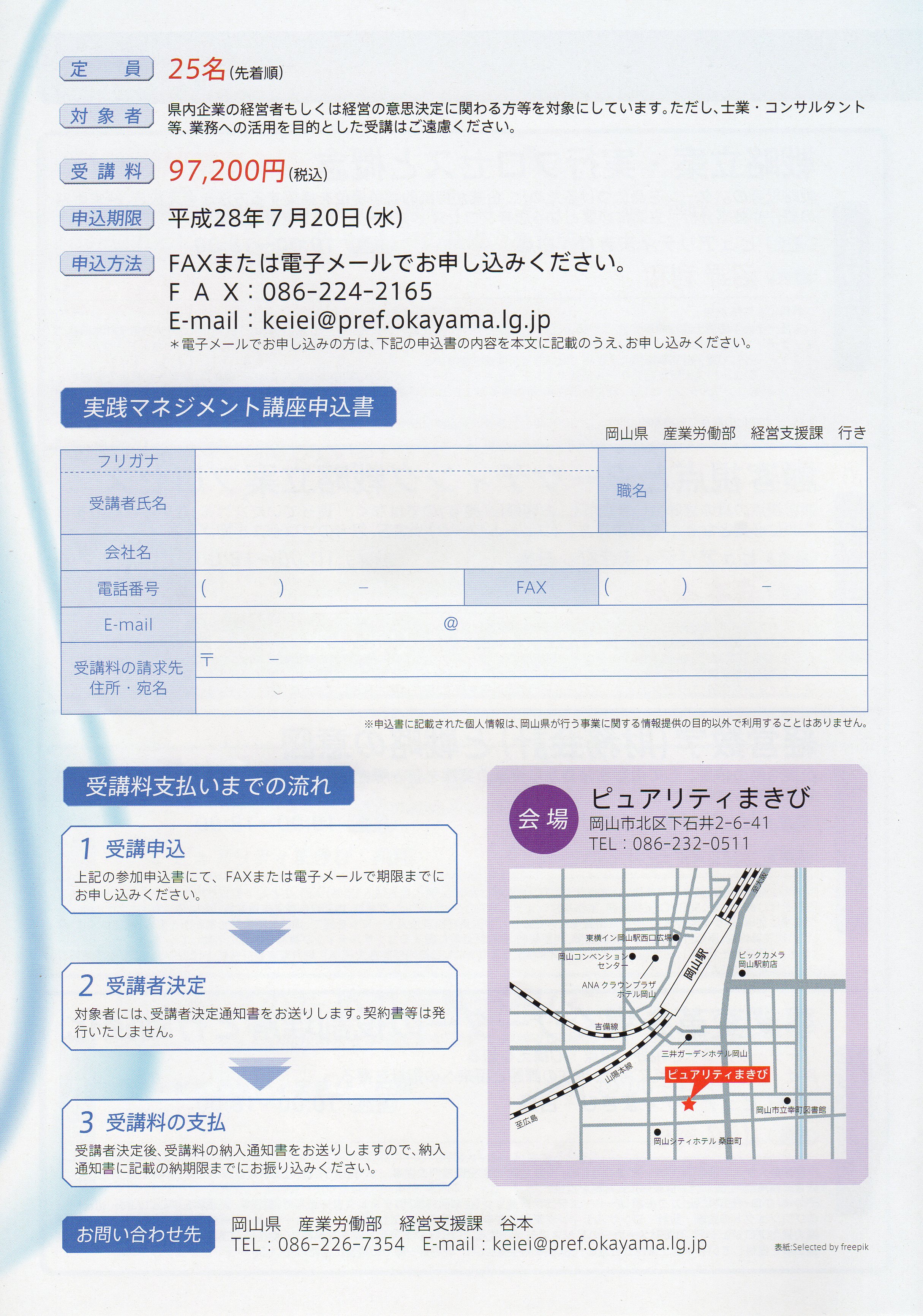 > 岡山県ビジネスリーダー養成事業「実践マネジメント講座」のご案内