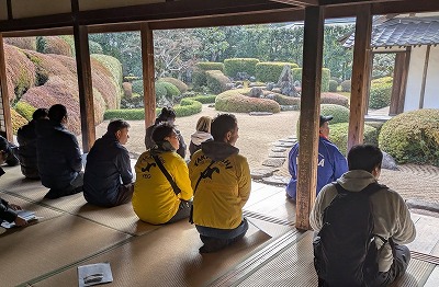 岡山県商工会議所青年部連合会では、「第15回会員大会・高梁大会」プレ分科会を1月17日(土)に高梁市で開催いたしました。当日は県内YEGより約40人(高梁YEG16人含)が参加、県青連古谷会長の挨拶の後、(一社)高梁市観光協会南事務局長に案内いただきながら、頼久寺、石火矢町ふるさと村見学の後、備中松山城へ登城し、猫城主さんじゅーろーに謁見、高梁YEGが主管し今年9月に開催する県青連「第15回会員大会・高梁大会」分科会のコースを歩き確認いたしました。終了後「結まーる」で懇親会を行い、県内YEGメンバーと交流を深めました。