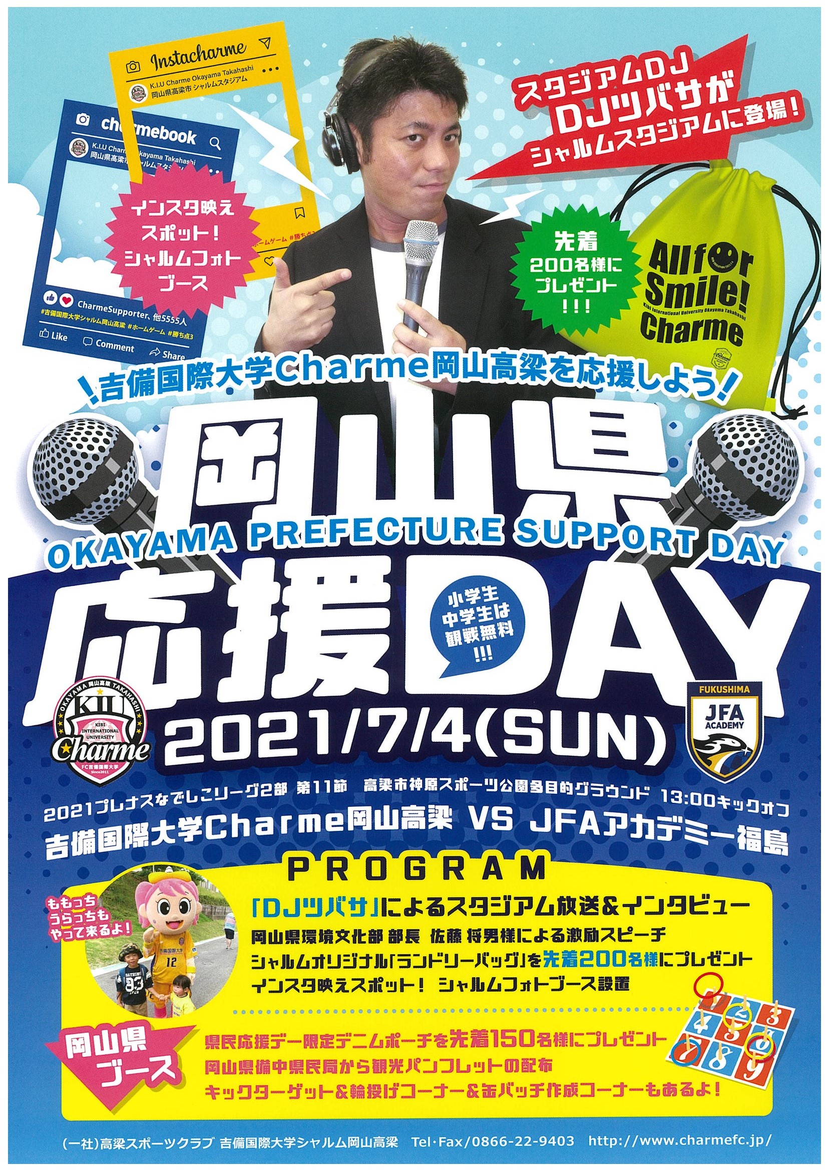 岡山県応援DAY(吉備国際大学Charme岡山高梁 VS JFAアカデミー福島)のご案内