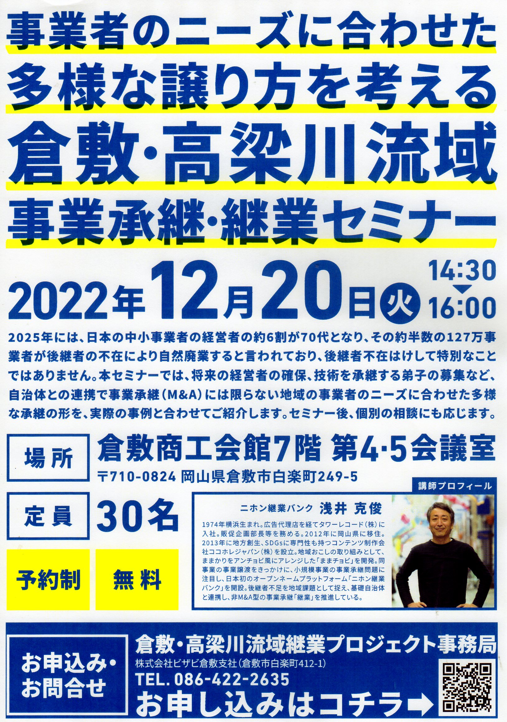 倉敷・高梁川流域事業承継・継業セミナーのご案内