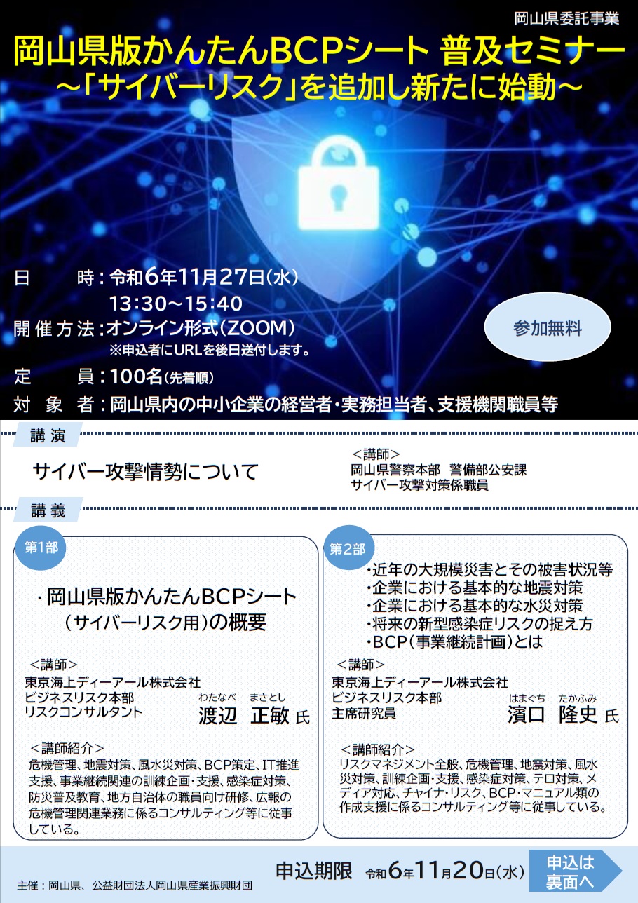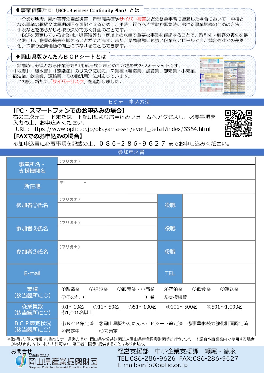 岡山県版かんたんBCPシート普及セミナーのご案内