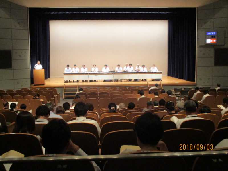 平成30年7月豪雨災害に伴う被災事業者支援制度説明会(高梁市・高梁商工会議所・備北商工会主催)を、9月3日(月)午後1時30分から、高梁市文化交流館で開催いたしました。当日は約110人が出席、最初に被災事業者支援制度の説明①国の支援メニューについて(中国経済産業局中小企業課復興推進室)、②中小企業等「グループ補助金」について(岡山県産業労働部事業者復興支援室)、③小規模事業者「持続加補助金」について(岡山県商工会連合会広域サポートセンター)、④岡山県融資制度等について(岡山県産業労働部経営支援課)、⑤雇用調整助成金等について(高梁公共職業安定所)、⑥高梁市の支援制度について(高梁市産業観光課、復興対策課)、⑦グループの形成方針について(高梁商工会議所経営支援課、備北商工会支援課)を行った後、質疑応答が行われました。