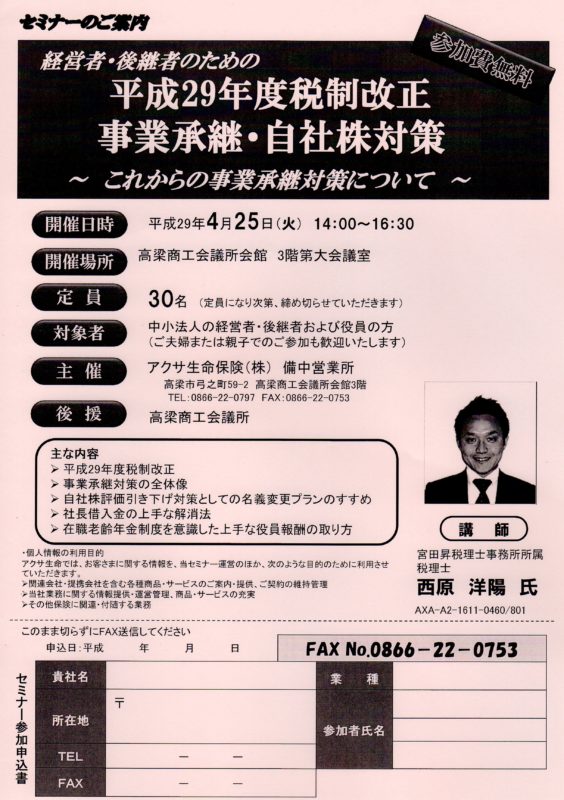 平成29年度税制改正「事業承継・自社株対策」セミナーのご案内