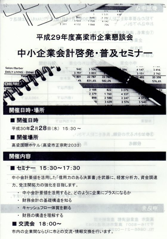 平成29年度高梁市企業懇談会「中小企業会計啓発・普及セミナー」のご案内