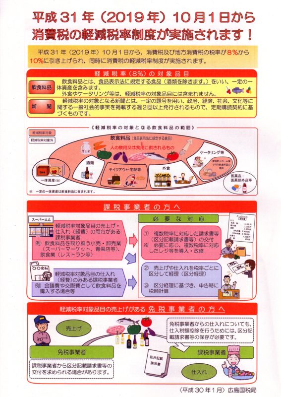 平成31年10月から消費税の軽減税率制度が実施されます