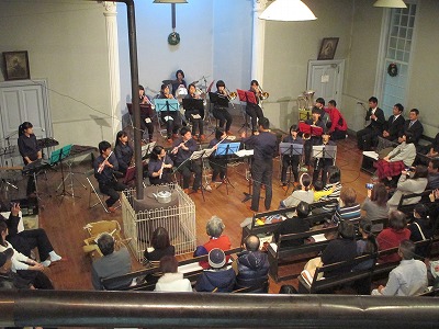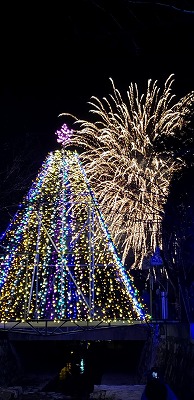 愛らぶ高梁ウインターフェスタ2018(高梁市青年経済協議会主催)が、12月1日(土)高梁基督教会及び紺屋側周辺で開催されました。午後5時から紺屋川に設置されたイルミネーション点灯式が行われ、6時からは基督教会堂で吉備国際大学軽音楽部、岡山県立高梁城南高校吹奏楽部が出演しクリスマスコンサートが行われました。また7時40からは冬空に花火が打ち上げられました。