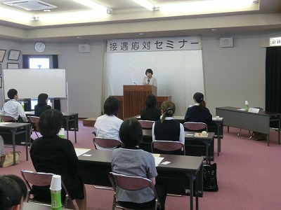 当所では、去る6月19日(火)午後1時から高梁商工会館第一会議室において(有)イージスの人材育成コンサルタント・佐野佐知子先生を講師にお招きし「接遇応対教室」を開催いたしました。当日は、10事業所から16人が参加、マナーの必要性や訪問・応接の基本などについて約3時間にわたり熱心に受講されました。