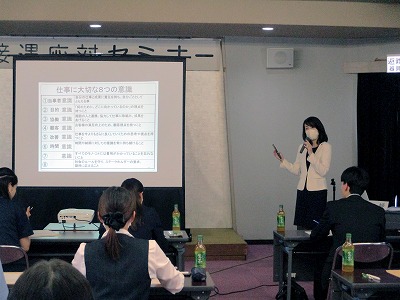 高梁市労務改善協議会では、7月18日(火)午後1時から高梁商工会館において、ホスピタリティー&マナー・ラボ代表 長澤さおり先生を講師にお招きし「接遇応対教室」(高梁商工会議所・(公社)高梁法人会高梁支部共催)を開催いたしました。当日は、会員事業所から約20人が参加、長澤先生からは「①働くとは、②交換を得る挨拶できていますか?、③信頼を得る名刺交換術、④社会人にふさわしい「言葉遣い」、⑤「報・連・相」の重要性、⑥会社の代表です「電話応対」などについてご講演いただき、参加された皆さんも約3時間にわたり熱心に受講されました。