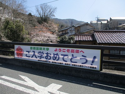 高梁商工会議所・高梁学生応援協力会・学園文化都市づくり協議会・高梁市では、新入学生歓迎事業の一環として、吉備国際大学への新入学生を歓迎しようと、学園橋やJR備中高梁駅、西口(2F)、東口出口等へ新入学生歓迎看板を設置いたしました。歓迎ミニポスターや紺屋町美観地区へのボンボリ設置(歓迎)などと合わせ歓迎ムードを盛り上げています。新入生の皆さん、ようこそ高梁へ。