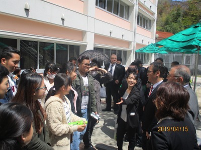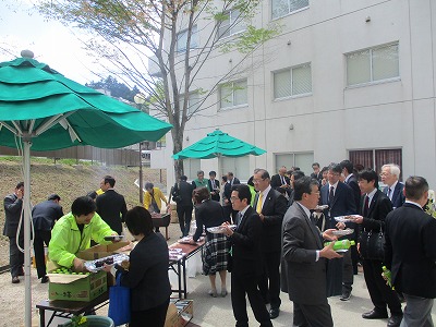 高梁学生応援協力会・高梁商工会議所では、吉備国際大学等の新入生を歓迎しようと、4月15日(月)12時から吉備国際大学10号館学生広場で「新入生歓迎会」(学園文化都市づくり協議会共催)を開催いたしました。歓迎会には、学生、順正学園・大学関係者、高梁学生応援協力会・高梁商工会議所関係者、高梁市役所等が参加、田中会長の挨拶の後、準備した備中牛などの串焼き、ミニ弁当などを食べながら和やかに交流されました。